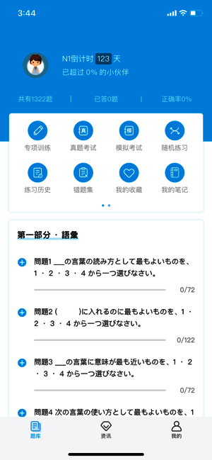 4、学习日语需不断记忆与练习,积累考试经验,在手机上就能便捷复习。