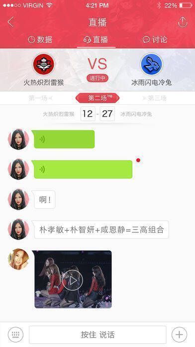 2、语音直播:独家主播通过语音、文字、图片全方位直播比赛战况,让你身临其境,既省流量又不卡顿。