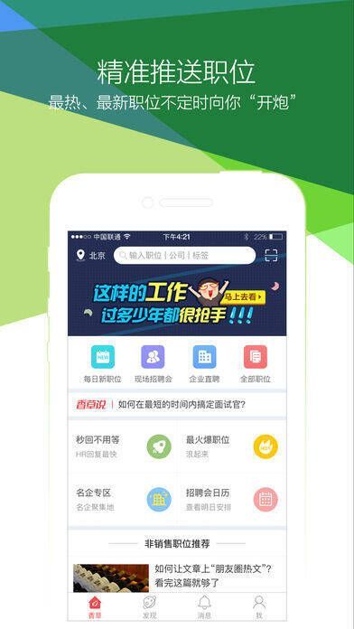 找份好工作,让父母安心!香草陪你闯荡职场。告别面试结果等待的煎熬,香草会在面试后24小时内反馈。可直接与企业方沟通疑惑和要求,还能了解职场规划、技能与知识,实践美好未来。