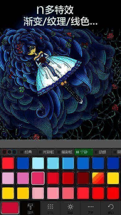 2. 支持自定义色、渐变色、纹理、明暗、线条色,多种特效助你打造独一无二的作品。