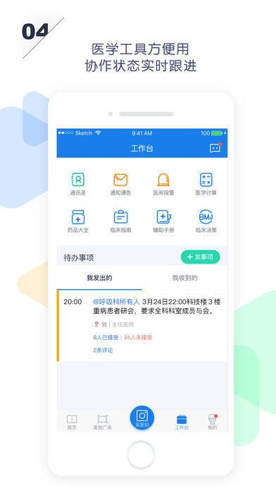 【学术资讯】丰富的经典病例、前沿学术研究和最新医学资讯,助力医护人员学术成长,了解行业动态。【医拍广场】进行前沿学术交流、经典病例讨论,有专家犀利点评,促进同行学习交流,积累业界人脉、提升专业素养。【我的医拍】可随时随地记录和存储感兴趣的医学内容,手机成为专属资料库,还有专业标注功能,随时记录灵感。【工作台】有院内通讯录、待办事项和专业医学工具,提高工作效率。