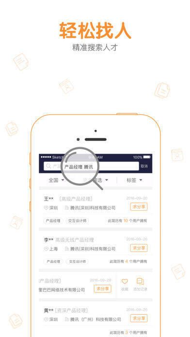 3、能够快速搜索筛选目标人才,还能免费给目标人才打电话,添加沟通记录、打标签和收藏,所有管理操作都会永久保存。