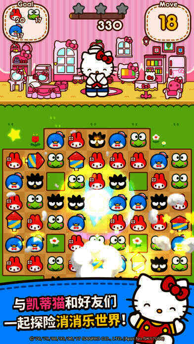 尽情享受消除障碍方块的乐趣,探索凯蒂猫和好友们的奇妙世界吧!