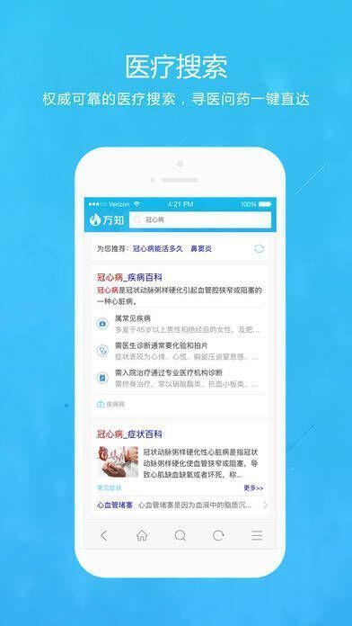 首页搜索功能,一键查找所需健康信息,深入解读用户核心需求,全心服务每一位使用者。