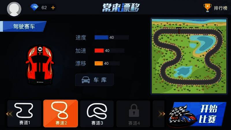 1、自由选赛道直接比赛,从车库挑车出发;2、三大数据展示车的性能,漂移速度和加速度是时间赛关键;3、开启3D赛车场,逼真场景让驾驶轻松又真实。