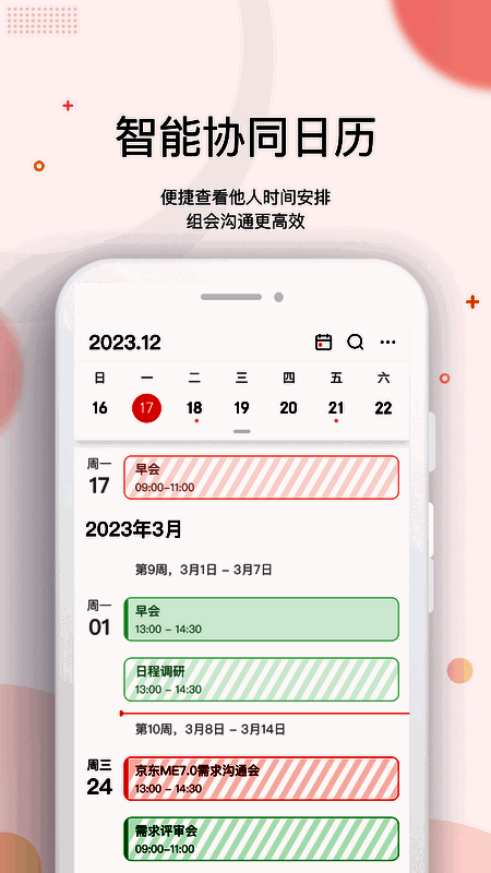 1、全面日程管理:既支持设置个人日程,又能同步团队活动,让所有成员及时掌握会议或任务变动。