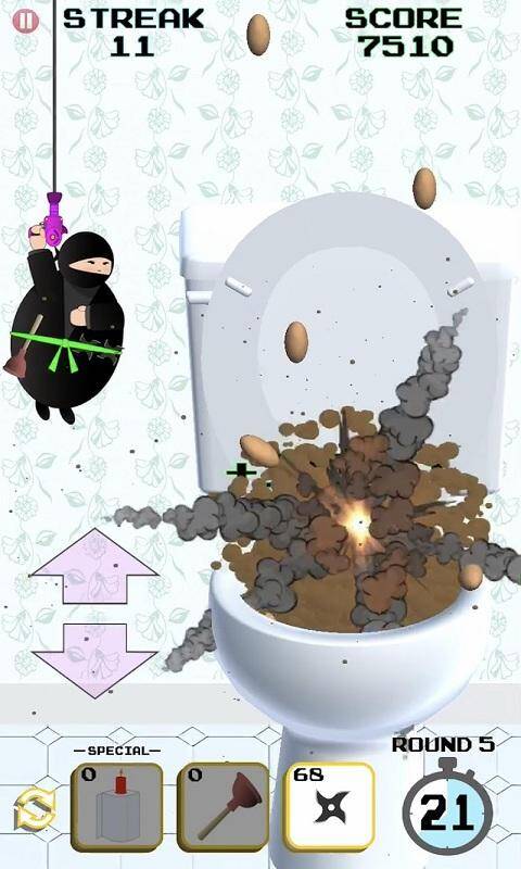 这是一款画面风格独特的休闲闯关游戏。玩家将扮演忍者,目的是消灭卫生间里的细菌。虽行为是好事,但不想被人发现,只能从房顶偷偷潜入。玩家可利用飞镖、忍术和各种道具达成目标,操作模式多样,关卡丰富。
