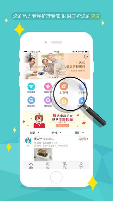 该平台以专业护士为核心,为用户提供上门护理服务。