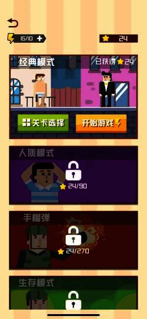 3、游戏每个模式都有不同关卡挑战,留意敌人位置才能获得三星评价。