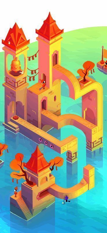 《纪念碑谷3》是具备解谜和障碍赛道功能的手机游戏。玩家触摸、滑动屏幕改变环境,创建通往目标的路径。关卡由移动平台、旋转结构和视觉错觉构成,解谜能揭开绝美风景。