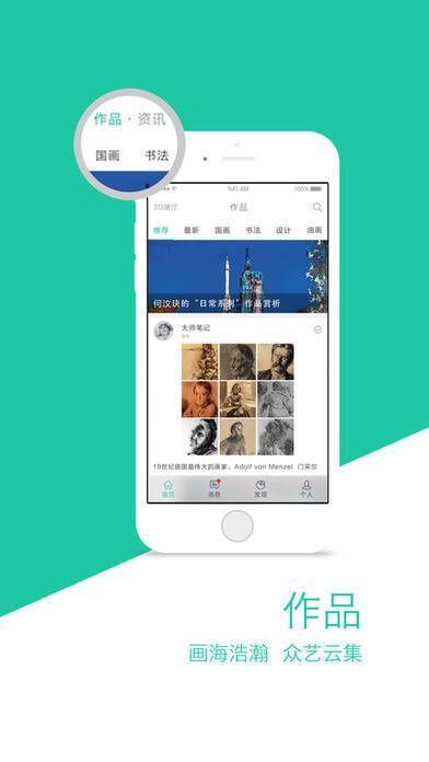 精品展区:用户可欣赏画家圈所有用户发布的艺术作品,还能将自己的作品分享到画家圈,供全球画家和亿万网友欣赏,也能浏览推荐的全球优秀画家作品。