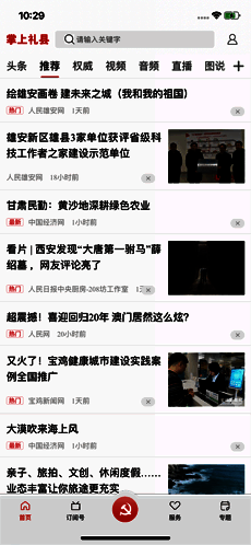 进入首页点击搜索,输入关键字可查找相关新闻信息;点击右上角添加,可自主订阅新闻频道;选择视频、音频,能观看视频新闻和收听广播;进入直播专区,可及时观看正在直播的新闻报道;打开订阅号,能自主管理关注列表;选择服务,可自由体验便民服务和公共服务。