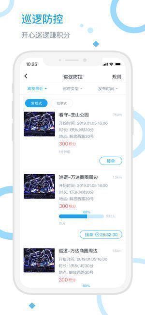 1、巡逻防控:传统的巡逻防控多由公安民警内部执行,而通过“星城园丁”APP平台,大家能在“巡逻防控”模块领取任务,完成巡逻即可获得积分。