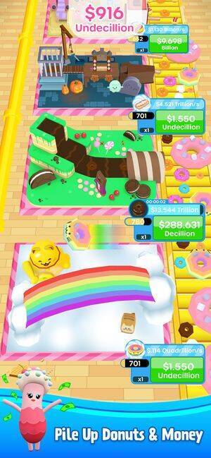 - 制造疯狂机器,掀起甜甜圈热潮,在闲置点击游戏中致富。