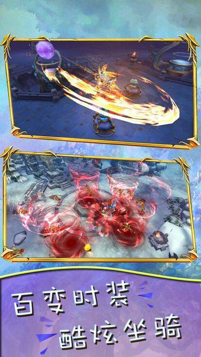 1、以大型精美3D魔幻风格打造,多人在线跨服激战,战胜强大对手,夺取胜利。