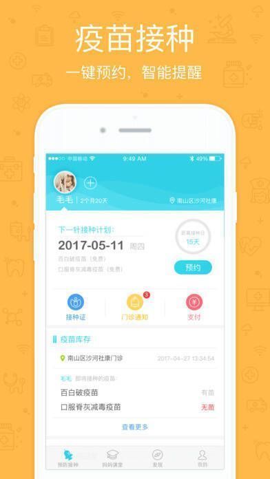1. 电子接种证:同步宝宝接种记录,已打和未打疫苗一目了然,手机随时可查。