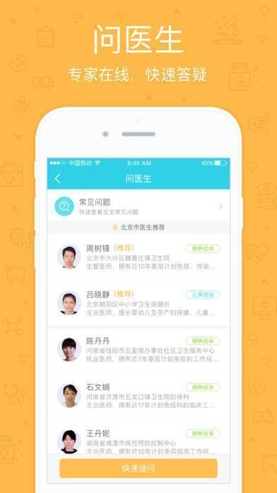 1. 问医生:专业儿保和计免医生在线解答打疫苗困惑和育儿问题。
