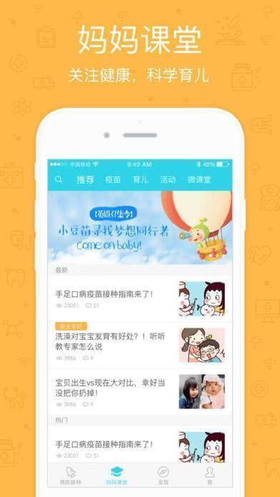 2. 妈妈课堂:以通俗易懂的语言和生动的漫画、动画讲解疫苗和育儿知识。