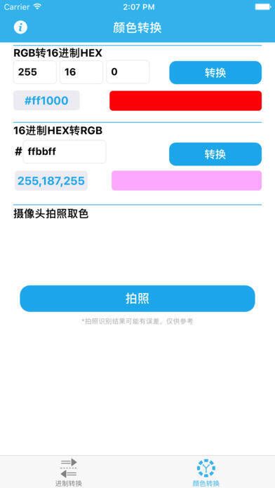 2、支持颜色转换,可实现RGB颜色与HEX数值之间的转换。