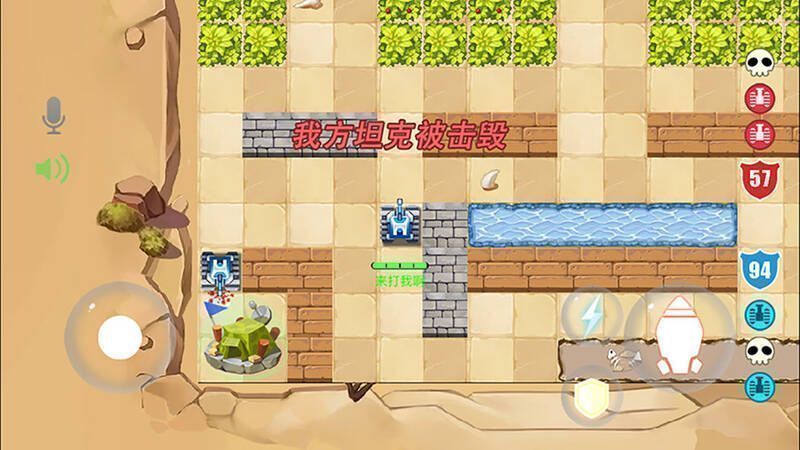 1、游戏目标:每关要在不同地形上摧毁20辆敌方坦克才能通关,同时要保护好自己的基地。2、操作方法:点击屏幕左下角方向键控制坦克移动,右下角发射键发射子弹。