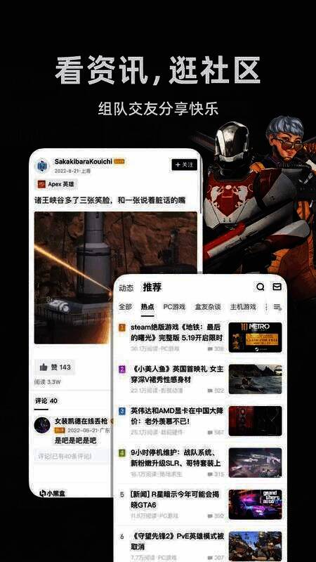 小黑盒游戏社区 iOS 官方版是一款专门为游戏玩家量身定制的综合性专业应用,它将多个游戏平台整合在一起。已有累计 5000 万以上玩家选择使用,有了它,玩家玩游戏更加省心。它能轻松同步 Steam、EPIC、Switch、PSN、Xbox 等各大游戏平台的数据,无畏契约、APEX、绝地求生、原神等热门游戏的战绩查询这里一应俱全。同时,还会全天候更新精选游戏资讯,有高端玩家撰写的专业评测和攻略为玩家答疑解惑。优质的内容社区,能让兴趣相投的玩家找到归属感。