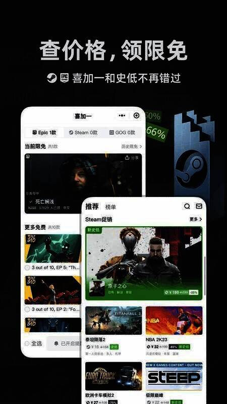 2. 会及时推送全网史低价的游戏,让玩家不错过心仪游戏的打折机会,能及时购买到喜欢的游戏。