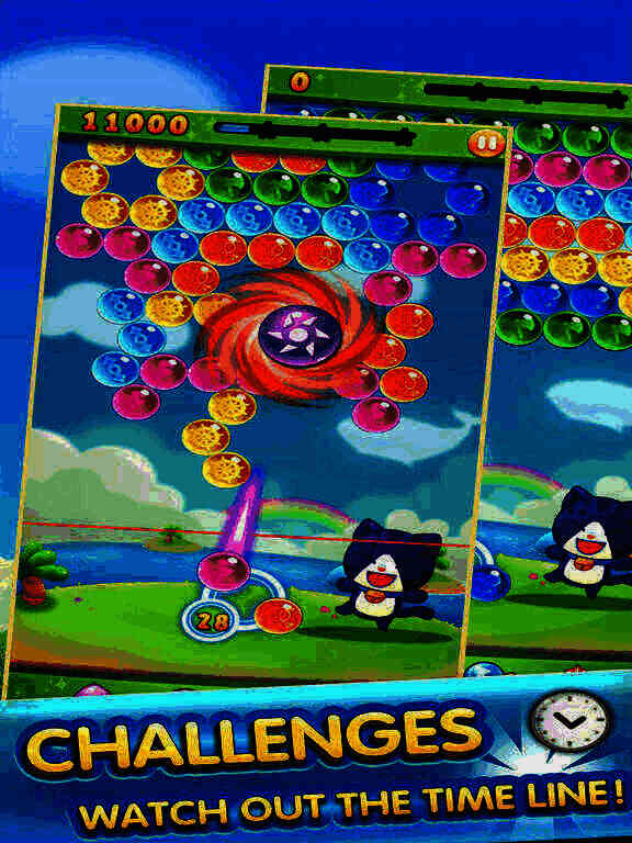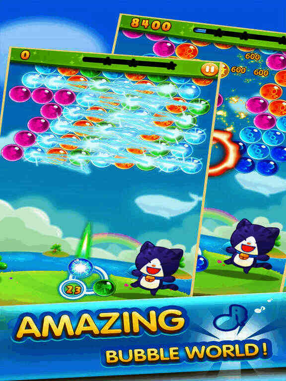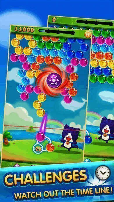 3、别再等待,看着赏心悦目的画面,听着悦耳的音乐铃声,探索丰富的泡泡地图,和全球其他玩家一起畅玩泡泡龙传奇!