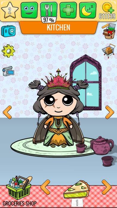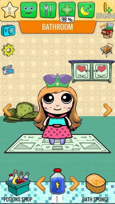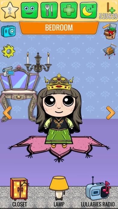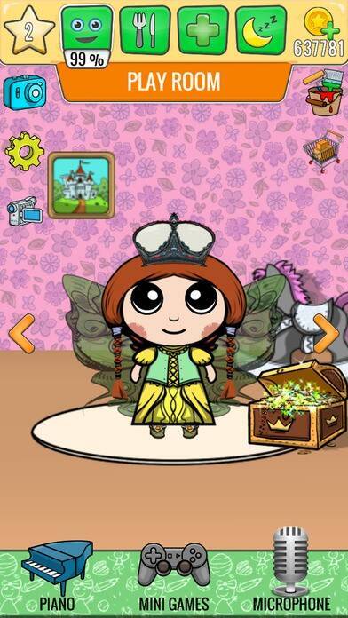 4、乐趣可不止于此。这款超酷的女孩游戏,除了能给公主装扮,你还要喂她吃饭、给她洗澡。要是公主生病了,得给她吃药。当然,让她开心的方式还有很多!在小游戏中,你可以播放动听的歌曲,和公主说话,她会用搞笑的声音重复你说的话。这款虚拟宠物游戏既可爱又吸引人。