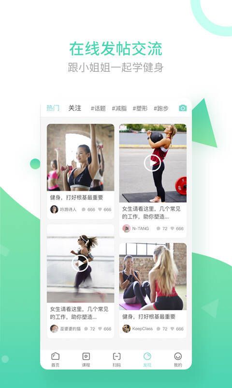 2、发现身边有趣的健身故事,分享自己的健身生活,结交有共同爱好的朋友。
