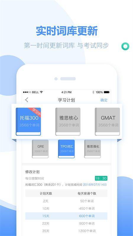 【海量词汇库】涵盖托福、雅思、GRE、GMAT、SAT等考试词汇,实时更新,与考试同步。