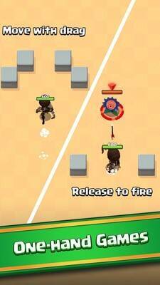 游戏操作风格独特又简单,滑动手指控制方向并点击即可射击。