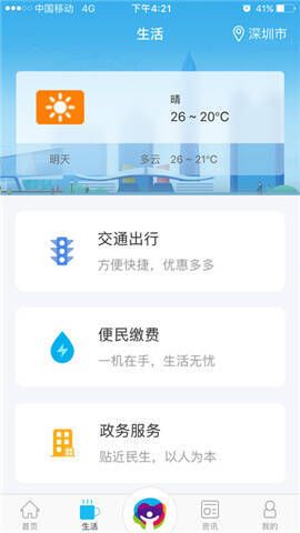 还有深圳地铁路线查询、话费流量充值、影剧院订票、水电煤缴费、加油卡(中石化)充值等更多功能。