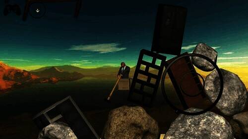 2、游戏中坐在缸里的角色用锤子不断上爬,操作颇具挑战性。
