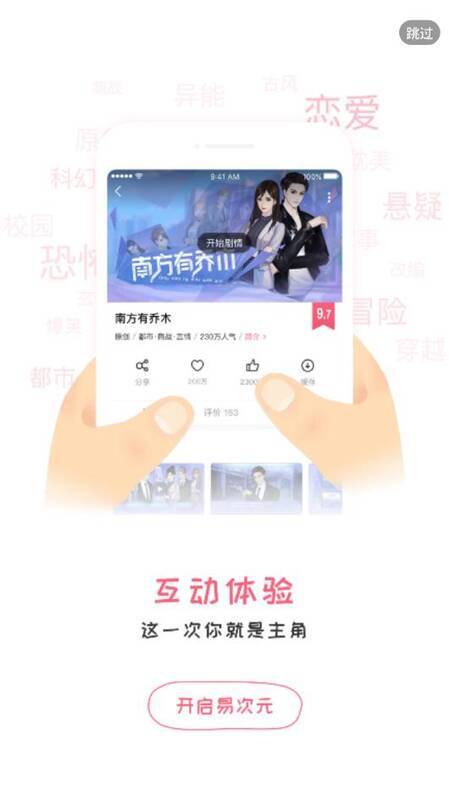 易次元是网易打造的互动阅读平台。平台有海量互动文字作品,以精美画风和多支线多结局的浸入式剧情,带来全新阅读感受。在网易易次元 app 上,既能在线阅读国内优质原创互动文字作品,也能利用平台编辑器和素材库创作个人专属互动阅读作品。