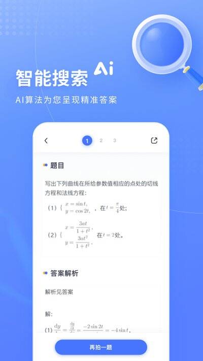 拍照搜题:庞大题库,手机拍题即可获详细解题步骤。