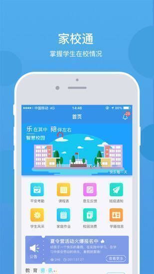 乐陪校园app是一款聚焦智慧校园的手机应用。它把学校各个独立的系统整合为一个庞大的智慧网络平台,让学生、家长和老师都能通过该app开展办公、学习和生活等活动。乐陪校园手机版便于家校互动沟通,家长可以直接在手机上查看学生进出校园的时间,清晰掌握孩子的行为轨迹,实用性极强。
