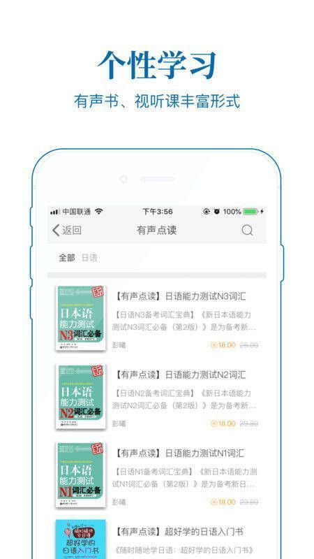 2、有声点读:日语点读发音电子书,内容从入门到高阶,即点即读;