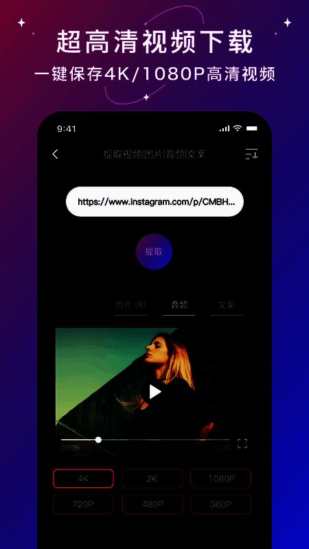 3、复制成功后,打开本软件,点击首页的[提取视频|图片],进入页面后,将刚才复制的链接粘贴到输入框,点击[提取]即可。
