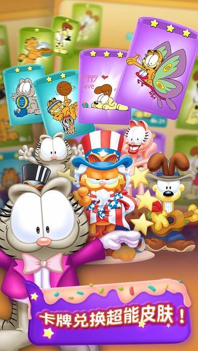 1、重温经典:《加菲猫爱消除》获得加菲猫运营方独家正版授权,动画原班人马经典配音,为玩家呈现最经典搞笑的原版加菲猫,让经典重现。