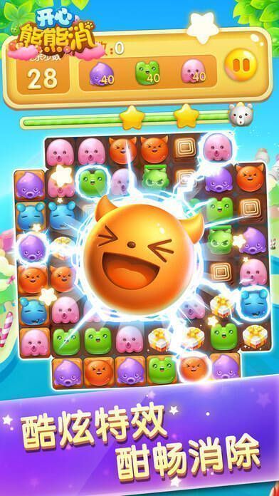 《开心熊熊消》是2016年国民级萌系消除手游,能和呆萌熊子、萌宠一起闯关,集结新伙伴,消除烦恼!