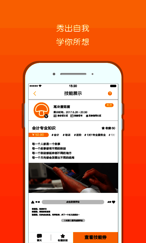 【分享技能】发布个人技能,自由兼职赚钱交友。