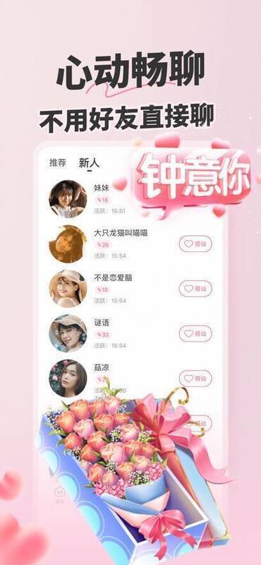 享聊将用户按推荐、本地、附近和新用户分类展示。你可以浏览用户列表,直接和心仪的人互动交流。推荐板块会展示社交媒体达人,和他们聊天能提升你的聊天技巧。同城板块展示与你同城的人,方便在同一城市交友。附近板块展示周围的人,满足你就近聊天交友的需求。新人板块展示新加入的可爱女孩和用户,让你体验聊天的羞涩感。