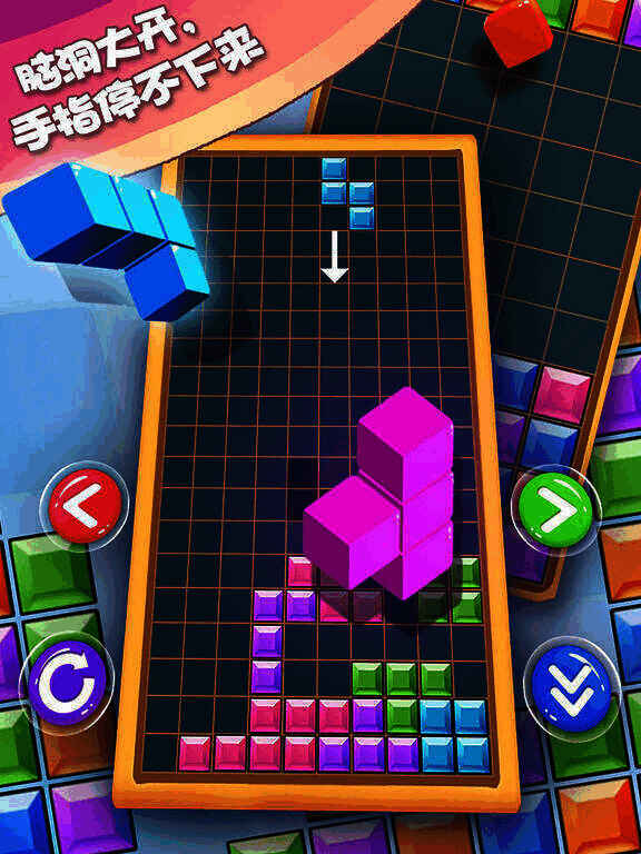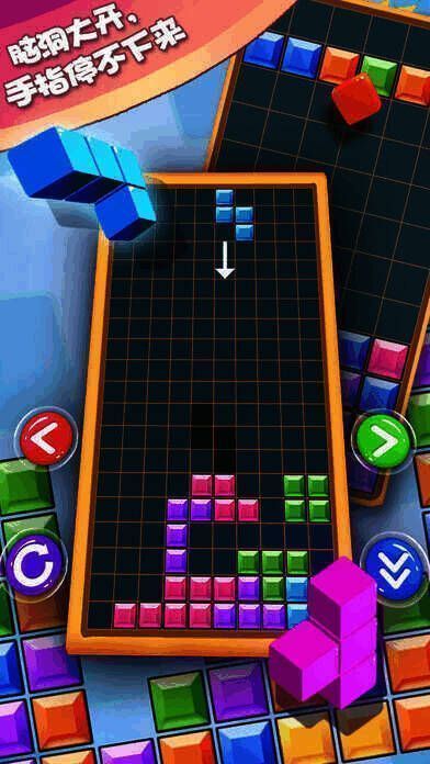 1、下落模式:经典玩法,通过宫格旁按键控制方块下落,消除行数越多,得分越高。