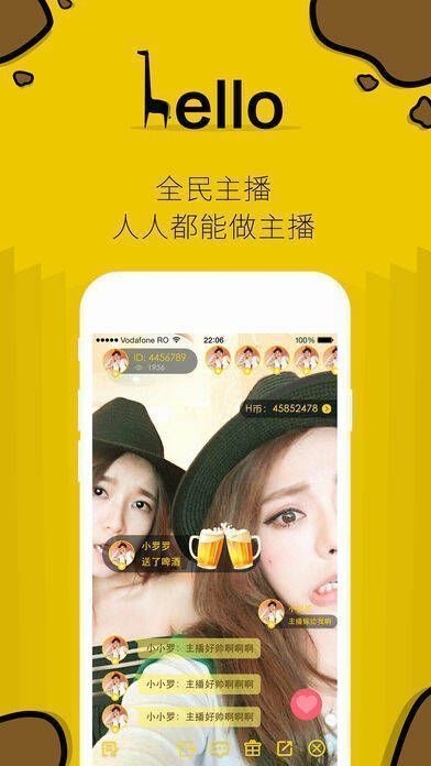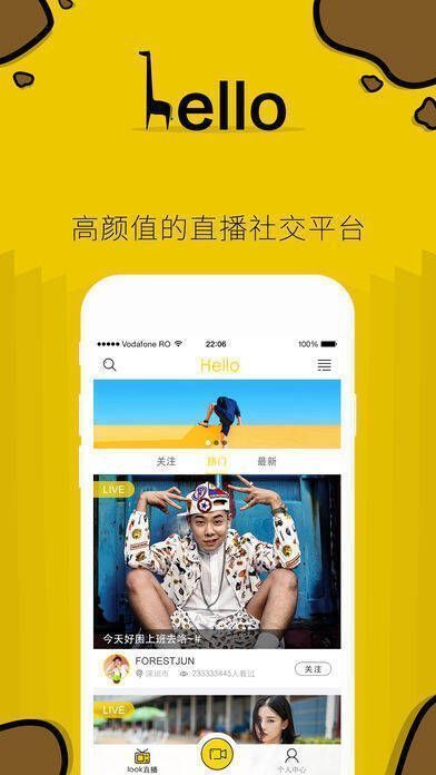 重大消息!全新视频直播软件Hello直播重磅登场!这是一款简约又时尚的APP,追求潮流的你,快点击萌萌的长颈鹿图标,开启直播新时代!