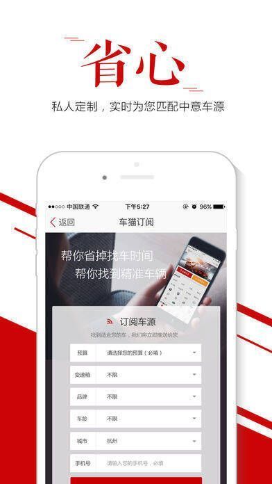 4、车源订阅:用户可根据自身个性化需求订阅车源,车源更新后会通过短信或消息及时通知。