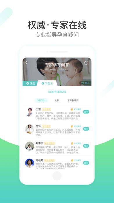 【孕育百科】有权威专家指导,提供全方位专业的科学备孕指南、胎儿发育、胎教音乐、各孕期营养食谱、产后恢复、哺乳喂养、早教、安全教育等新生儿及育儿知识。还有280个专业育儿视频讲解,如宝宝感冒、发烧、腹泻等内容。百名专家在线解答问题,陪伴宝宝健康成长。