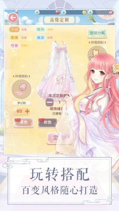 2、【绝美服装,风格百变随心造】国内顶级画师团队历经数年精心绘制,近万件高精度服饰等你收集。日常时尚、古风华美、欧式繁复、梦幻童话、中性帅气、未来科幻等风格应有尽有,打造超棒的视觉盛宴。玩家还能通过收集服装和设计材料,亲手定制个性化专属服装风格。