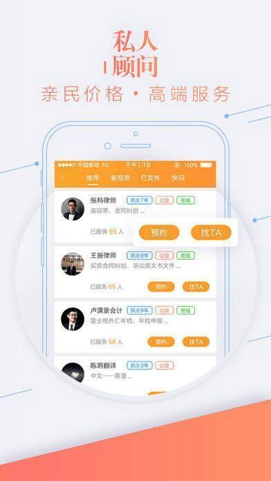 这里有你人生中不可错过的挚友,像律师、翻译、财务、医生、教师等,遇到问题,轻松咨询或简单发布需求,就能获得一对一贴心服务。