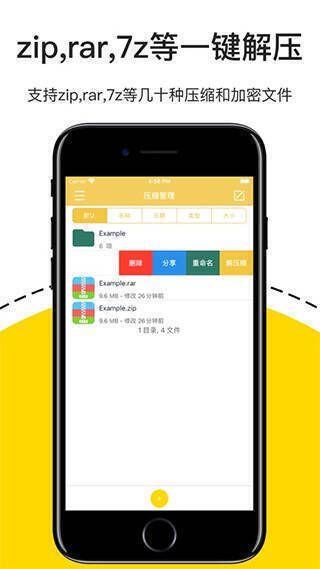 1、解压:支持ZIP、7Z、RAR文件压缩和解压。