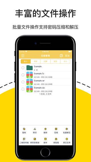 解压专家苹果手机版是App Store里极具知名度的解压缩软件,界面简洁无广告,功能丰富且完全免费。它能解压缩7z、zip、rar、tar、jar等格式文件,可选择解压缩路径,还能帮用户压缩文件并支持加密压缩,保障用户隐私,满足解压缩和压缩文件需求。此外,还有扫描码下载、浏览器下载、视频文件播放等实用功能,让观看本地视频和下载文件更便捷。